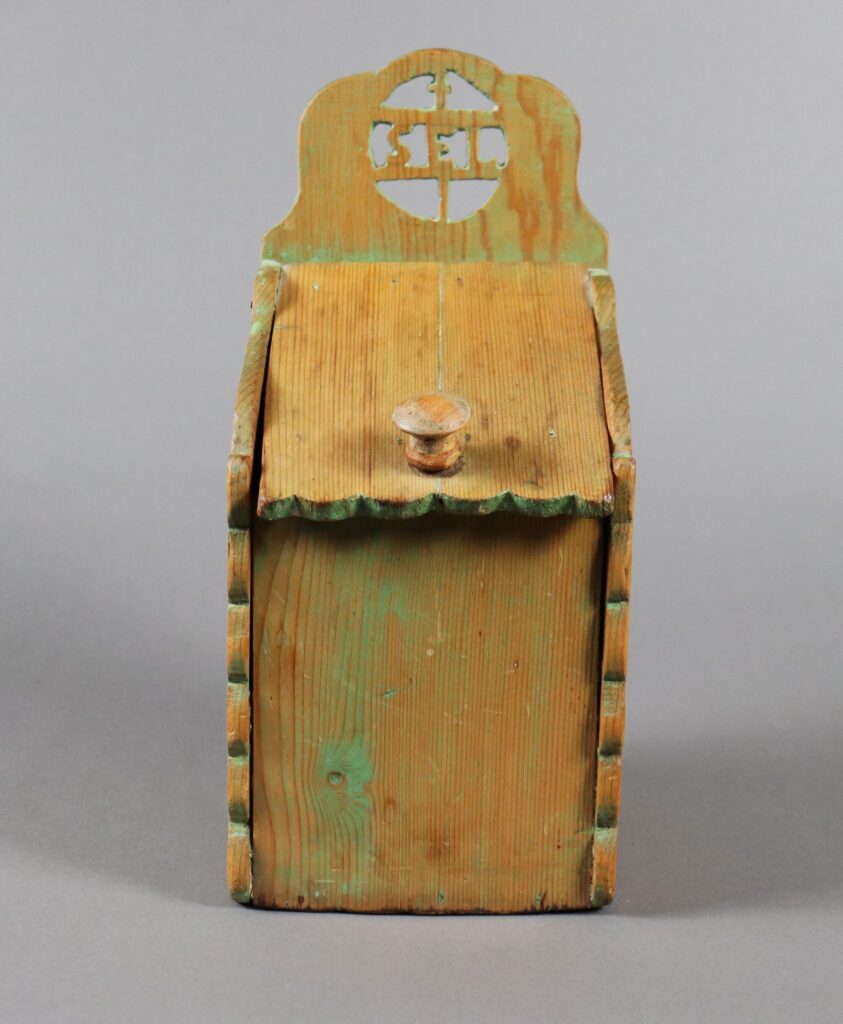 Before the advent of refrigerators, salt played a very important role in food preservation. In the early colony, salt was very precious and expensive, since it had to be imported from France. The salt box was usually hung near a heat source (fireplace or stove) to help control humidity.
