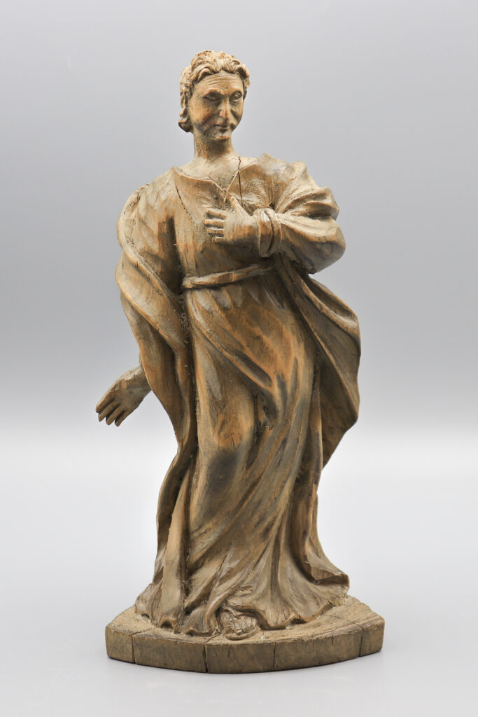 This figure was part of a set of four evangelists created for the church of Saint-Antoine de Longueuil. A Louis XV style, which some specialists associate with the Écores mastery.
