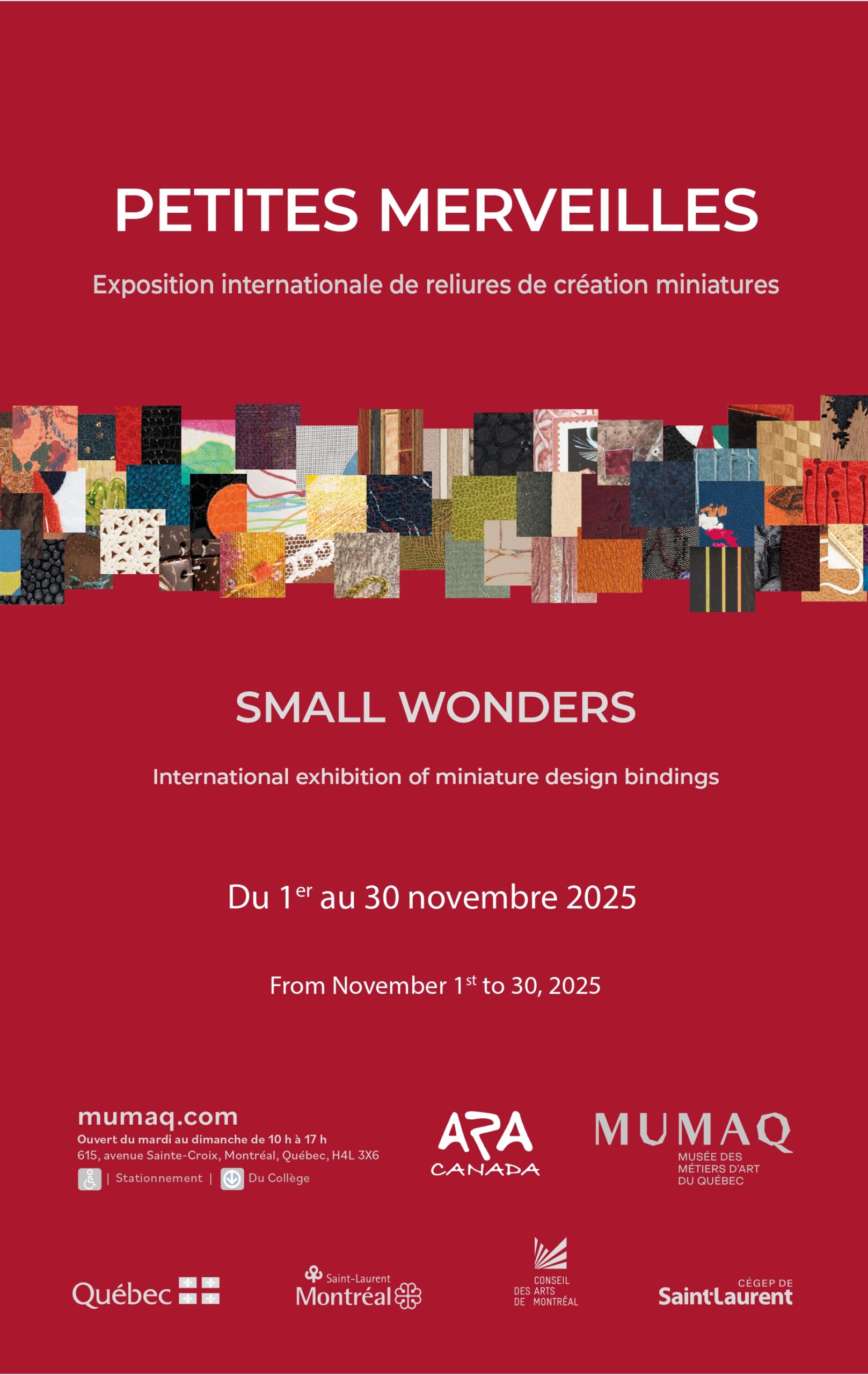 Petites merveilles : Exposition internationale de reliures de création miniatures est en salle au MUMAQ du 1er au 30 novembre 2025.
