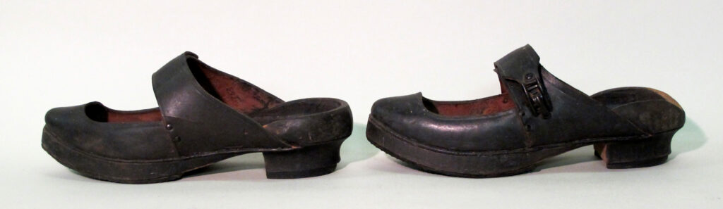 Cette paire de souliers, appelés des galoches, sont composés d'une empeigne en cuir noir et d'une semelle en bois. La paire a appartenu à Wilfrid Gareau, un portier québécois né vers 1878 et mort à la fin des années 1930. La forme des souliers rappelle ceux qu'on fabriquait autrefois en Bretagne, ce qui leur vaut le nom caractéristique de galoches bretonnes.