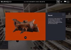 Découvrez notre toute nouvelle expérience en 360 degrés La vie secrète des objets ! Transportez-vous dans un endroit unique, où les métiers d’art québécois de toutes les époques sont réunis. Vous y trouverez des artéfacts surprenants, des capsules d’artistes tout en acquérant de nouvelles connaissances sur les métiers liés à la conservation muséale.
